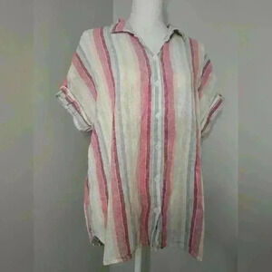 beachlunchlounge Striped Linen Blouse Size XLarge