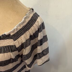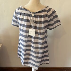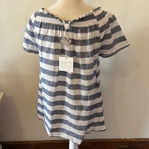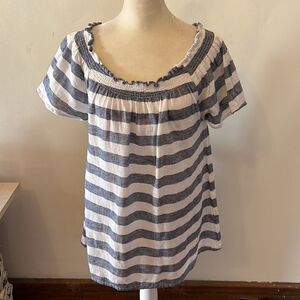beachlunchlounge blue white striped short sleeved ruffle top Size S New