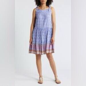 beachlunchlounge Blue and White Tiered Pleated Sundress