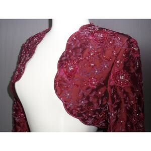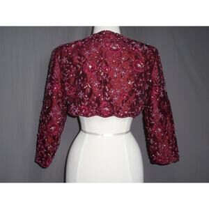 beaded cranberry jacket, party dressy formal evening jacket cover up bolero