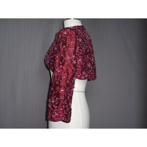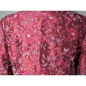 Stunning cranberry beaded jacket, bolero. Heavy beading on a satin fabric.
