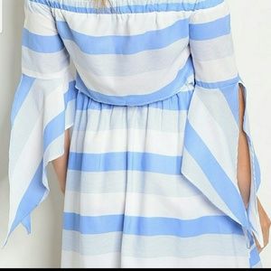 beautiful Off Shoulder, Striped, Bell Sleeve Dress