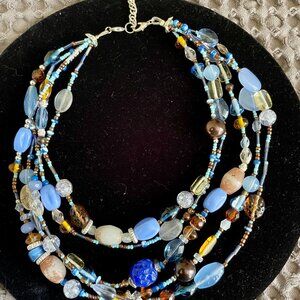 beautiful beaded 5 strand necklace in blues and brown