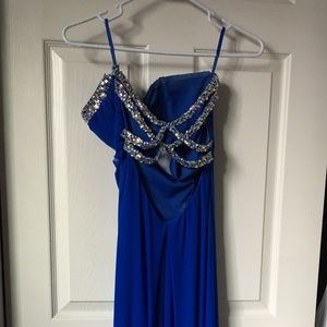 only worn once and my favorite dress. The back is open with a sequined cross section. Perfect condition and a size 5