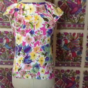 Beautiful floral top with lose fit sleeves! Elastic bottom (so your top doesn't blow up in the wind... jk) and is super cute worn with shorts or skinnies! Very lightly worn, (maybe twice tops), and in great condition!