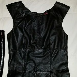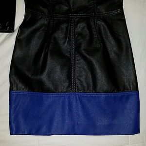 Beautiful midi leather like black and blue block dress! Worn once. Great for any occasion. X small,but can fit a size small too. Great condition.