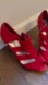 purchased brand new from White House Black Market, worn once! red suede, silver side zip, open-toed bootie-style platform pumps. was complimented on them a couple times, and love the not-too-bright-not-too-dark cherry red. i wear 9 1/2 so thought they'd be perfect, but slightly too big :( i love them, wish they were a tad smaller!! size 9 1/2, 4 in heel, 1/2 in platform. look brand new except on bottom of sole, where you can tell i wore them once! don't like the price? use the offer button!