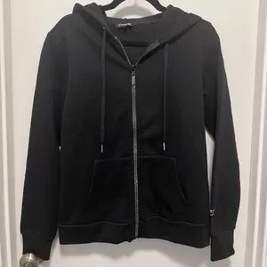 Black zip up sweater with jeweled zipper. New with tags.