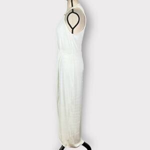 bebe Asymmetric Halter Dress Women's XS White Midi V-Neck Sleeveless Wrap Style