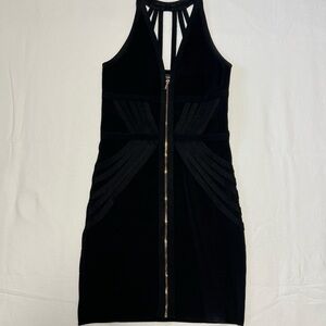 Chic black dress with a stylish gold zipper. Backless design for a bold look. Perfect for evening wear. Wore once