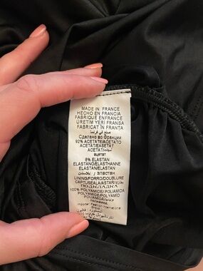 Chic one-shoulder silhouette with cascading ruffle. Ruched body creates a flattering fitted look. Sleek black tone for evening wear. Pairs well with heels and jewelry.