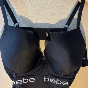 Stylish black intimates top by bebe. Features adjustable straps and logo detail.