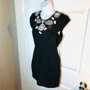 bebe Black Mini Sheath Dress Cap Sleeves Embellished Beaded Yoke Cocktail XXS
