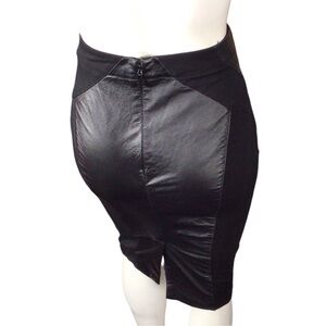 Chic black leather pencil skirt. Sleek and stylish design. Perfect for versatile wear.