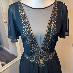 bebe Black with Gold sequins Mesh Chiffon Mini Dress, Size 2