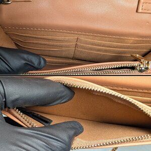 Lined interior has flap cover w/magnetic snap closure, 6 card slots, 1 zip pocket & 1 slip pocket