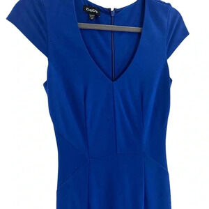 bebe Cobalt Blue Midi V-Neck Dress Size XS - Wedding Cocktail Party Dress - EUC