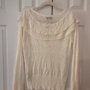 bebe Cream Sweater with Layered Ruffle Design