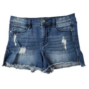 bebe Distressed Denim Cutoff Shorts Medium Wash Raw Hem Women’s Size 29