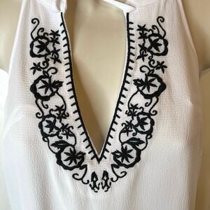 bebe Embroidered Sleeveless V-neck Top in White and Black Size Small