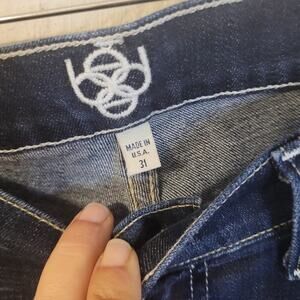 bebe Flare Denim Jeans Women's 31 70S Y2K Dark Wash Mid Rise Blue Denim