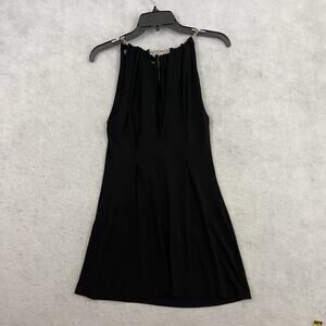 bebe Halter Top Womens Size XS Black Gold Chain Neckline USA Y2K Party Classy. Excellent Preowned Condition.