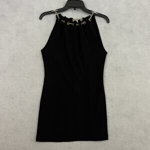 bebe Halter Top Womens Size XS Black Gold Chain Neckline USA Y2K Party Classy