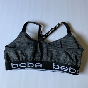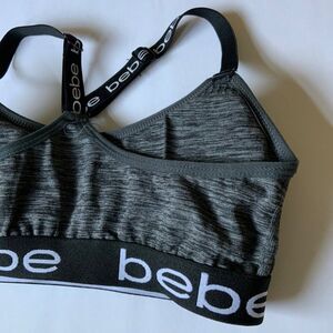 bebe Heathered Grey Black Logo Racerback Sports Bra Size Small