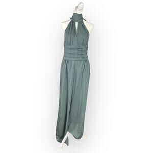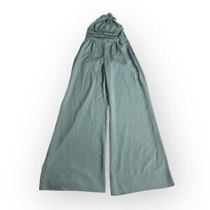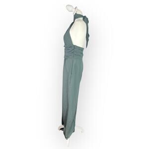 bebe Jumpsuit Women's Medium Light Green Halter Wide Leg Open Back Long