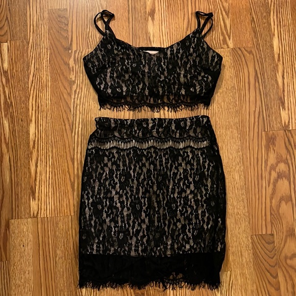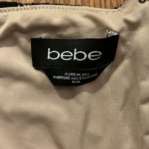 NWOT bebe set, size medium in the top and skirt. The skirt has a zipper and the top has adjustable straps and a stretchy band.