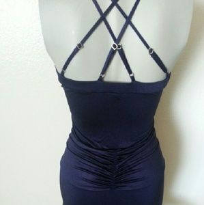 Stretchy and hugs in all the right places. This would make a great birthday dress or night out on the town. It hits mid thigh, but hugs and doesn't rise up. (I wore once for a going away event)