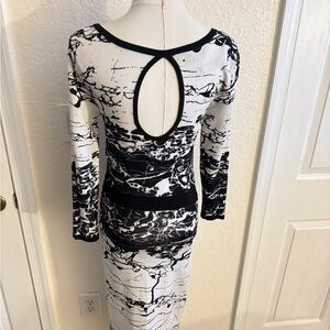 Chic long sleeve dress with bold monochrome design. Ideal for stylish outings.