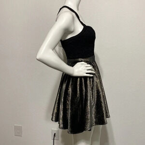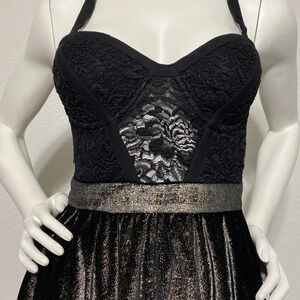 bebe *NEW Gold & Black Lace + Metallic Velour Mini Dress