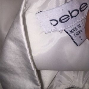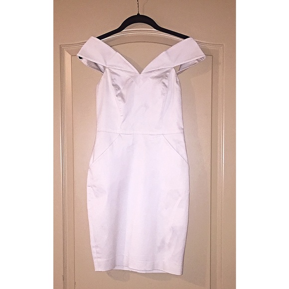 White bebe off-shoulder dress. Linen material; so it can be dressed up or down! Sexy dress while still being classy! Has pockets. Size 2. In great condition! Worn only 2 times. Sad to see it go!