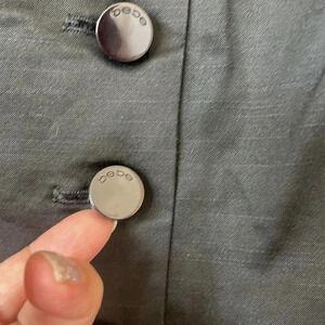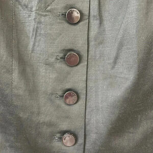 This skirt is a beautiful fabric and features black "bebe" buttons down the back bottom part of the skirt. It can be used for a date night, but is modest enough to be worn to work.