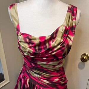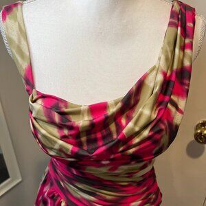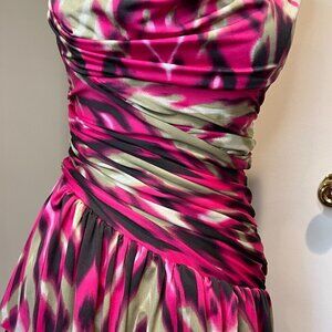 bebe Pink & tan Ruched mini dress with layered bottom, Size small