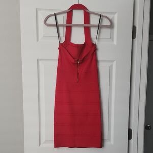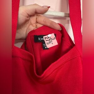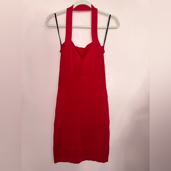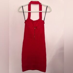 Stunning red backless dress by bebe. Features a halter neck design. Perfect for a night out. Bought on Posh and wore as part of a Clueless costume only for a few minutes for pictures. Like new condition. ❤️