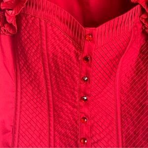Elegant red blouse with ruffled shoulders. Button-down front. Perfect for a stylish look.