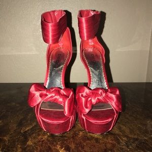 Gorgeous red satin heels with a cutesy bow in the front. These babies will definitely add a sexy look to your wardrobe.