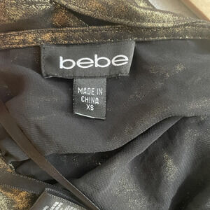 * Labels/Markings: bebe main label; size tag XS; RN 68077; CA 35882; Made in China; tag