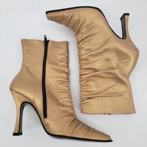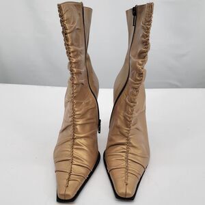 bebe Size 6.5 Slouchy Boots Gold Pointed Snip Toe High Heels Womens Mid Calf