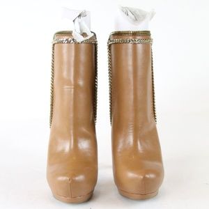 bebe Tan Platform Ankle Booties with Stiletto Heel