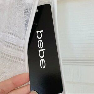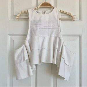 bebe White Ivory Cold-Shoulder Lace Detail Ruffle Blouse Top