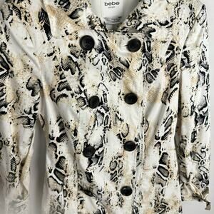 bebe Y2K Snake Skin Print Stretch Double Breasted Cotton Trench Coat Sz XS