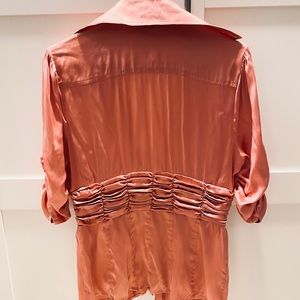 Cute, elegant, silky, rusty-salmon coloured bebe blouse.