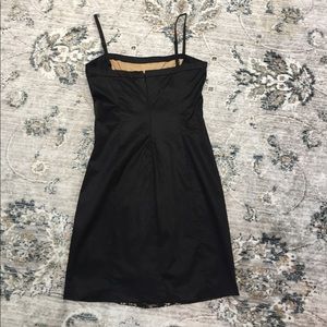 great condition little black dress from bebe. straps are adjustable. back zipper. material has some stretch. satiny look. slimming feature of middle stripe of nude material with lace overlay. measures approximately: 15" across, 13" at waist, 25.5" from armpit to bottom of dress. will ship same or next day (if not Sunday).