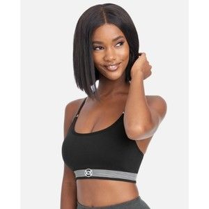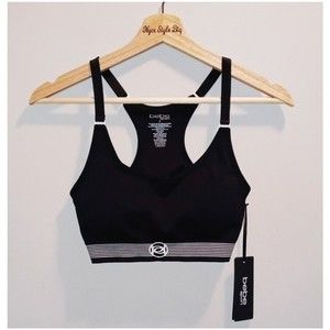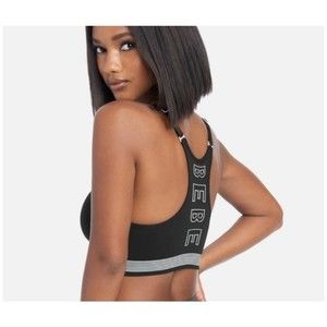bebe sport Geo Stripe Sports Bra Black & White w/ Adjustable Straps & Removable Padding