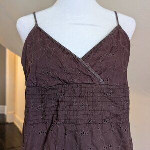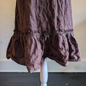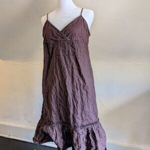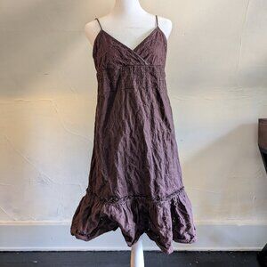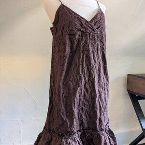 bebe vintage y2k brown gauzy ruffle hem drop waist midi dress (XS)