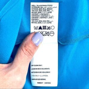 Button down sleeveless blouse in Capri Breeze (blue). All gold buttons are sewn tight (with not a single one loose). V-neck. High-low hemline is flowy. Comfortable and breathable, perfect for summer. Pairs best with shorts (blue jean, olive, white). Discontinued style. Smoke-free and pet-free home.
