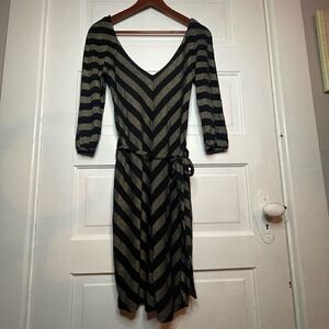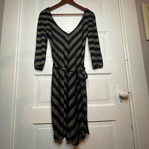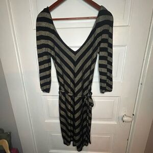 bebe Stripe 3/4 Sleeve Deep V Neck Flattering Dress